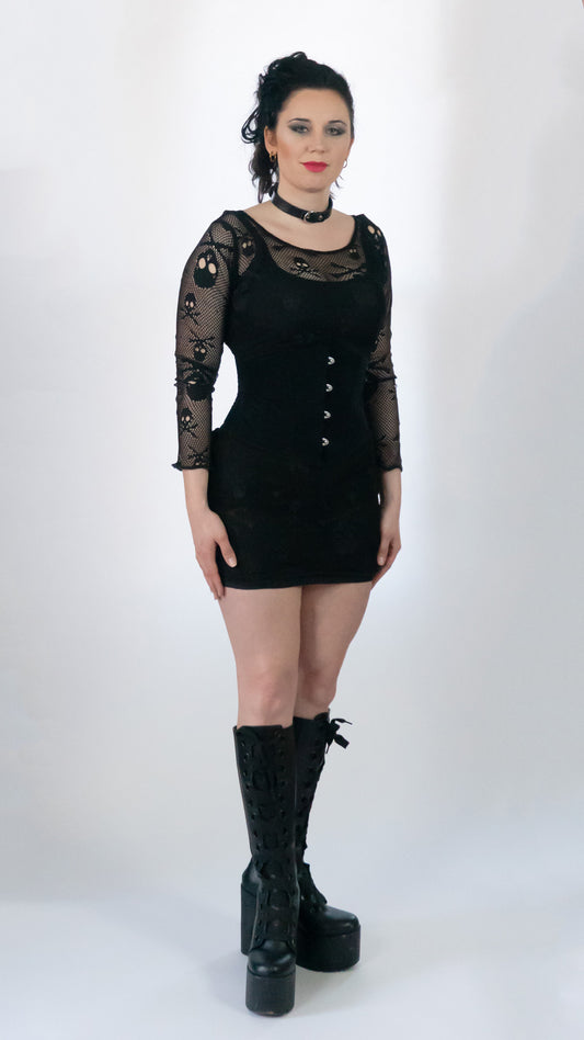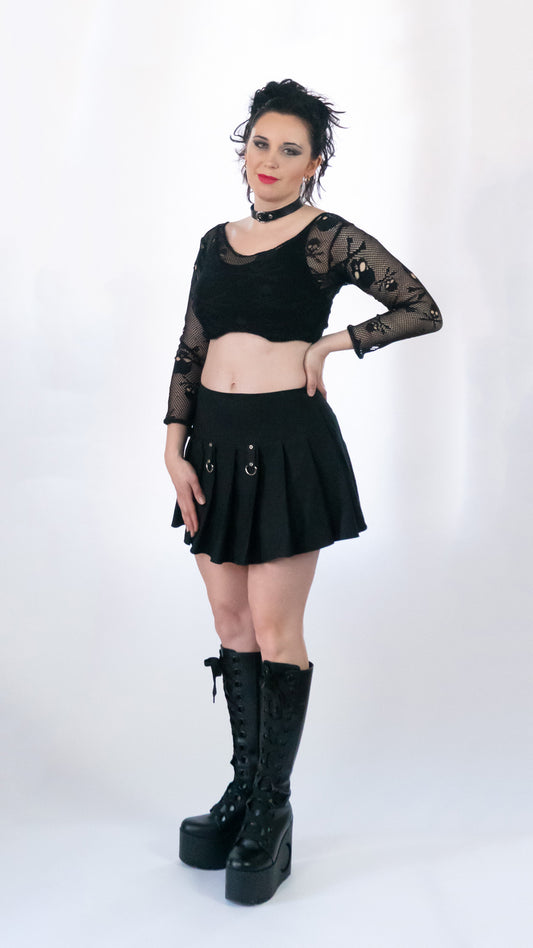 Nightshade Net Long sleeve black skull Fishnet body con crop top