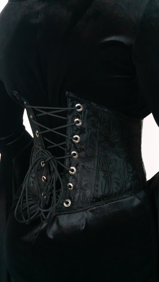 Midnight Bloom Black Brocade Waist Cincher