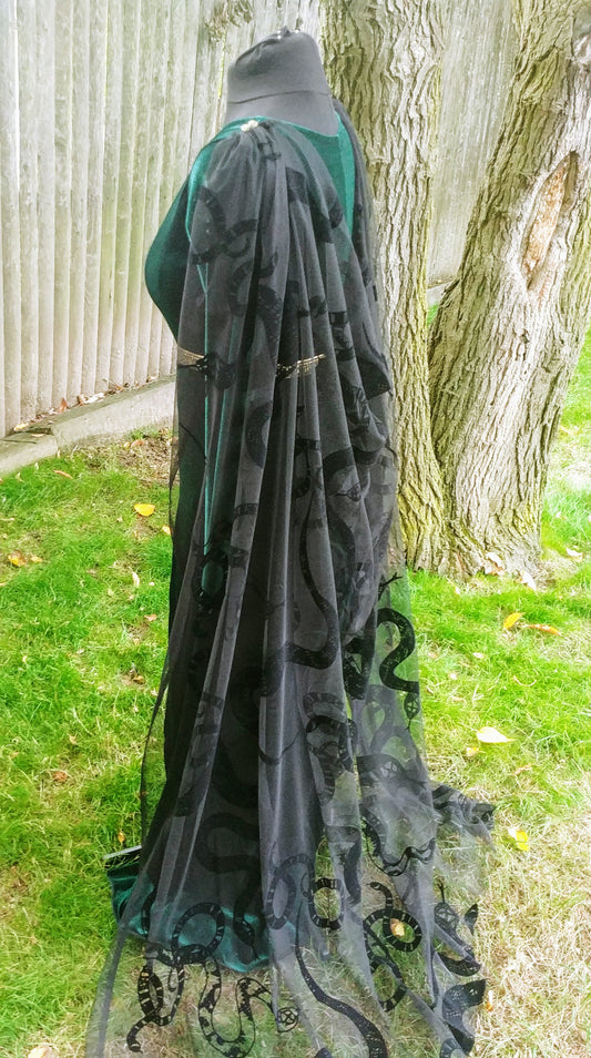 Green Velvet Goddess Medusa Sexy Snake Costume Dress with Slit