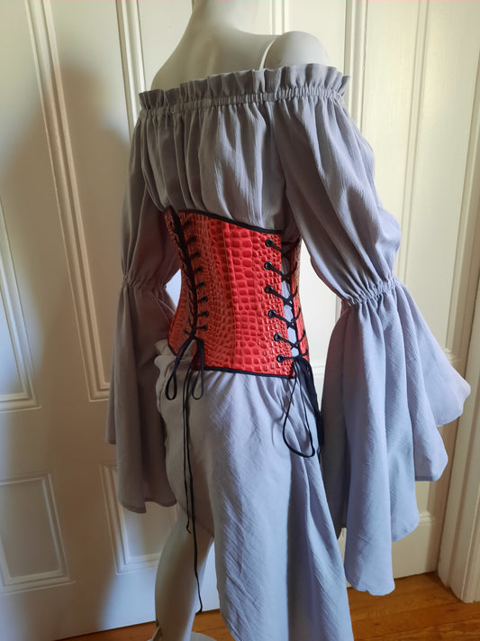 Red Dragonscale underbust corset with side and back lacing