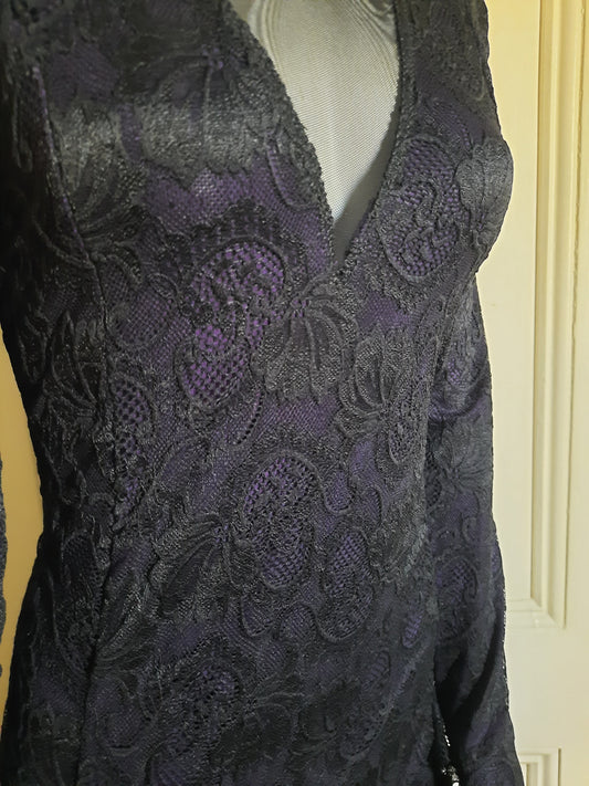 Matte black lace gothic sexy Morticia Addams Inspired Deluxe gown