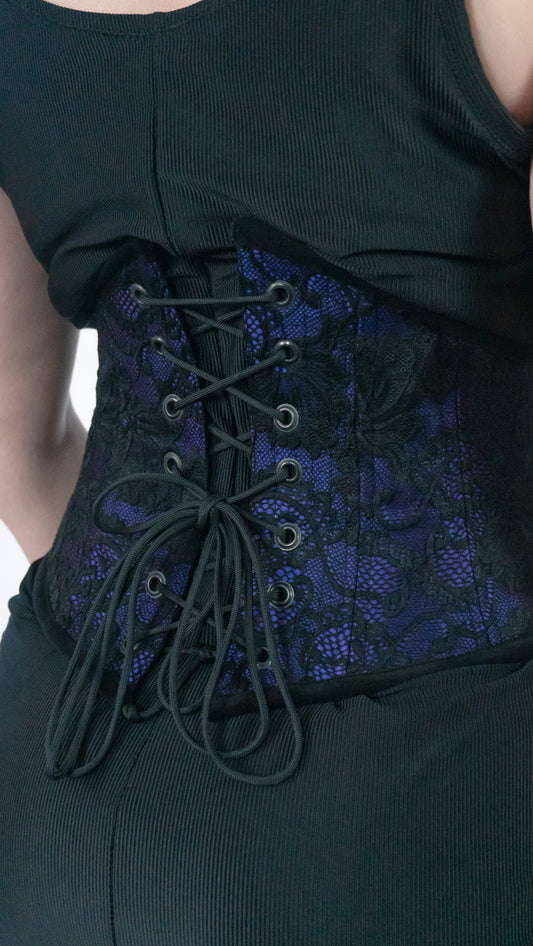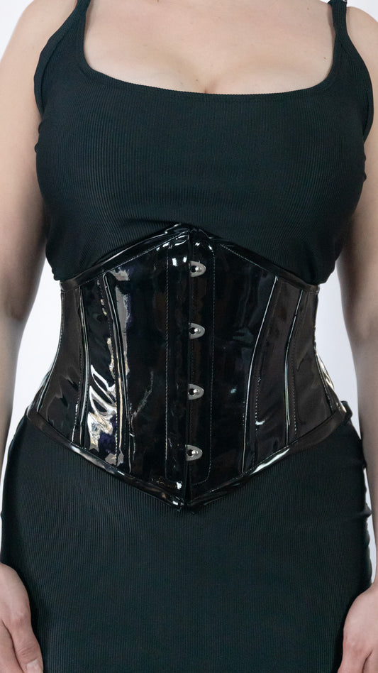 Black Vinyl Underbust corset hand set steel boned waist cincher